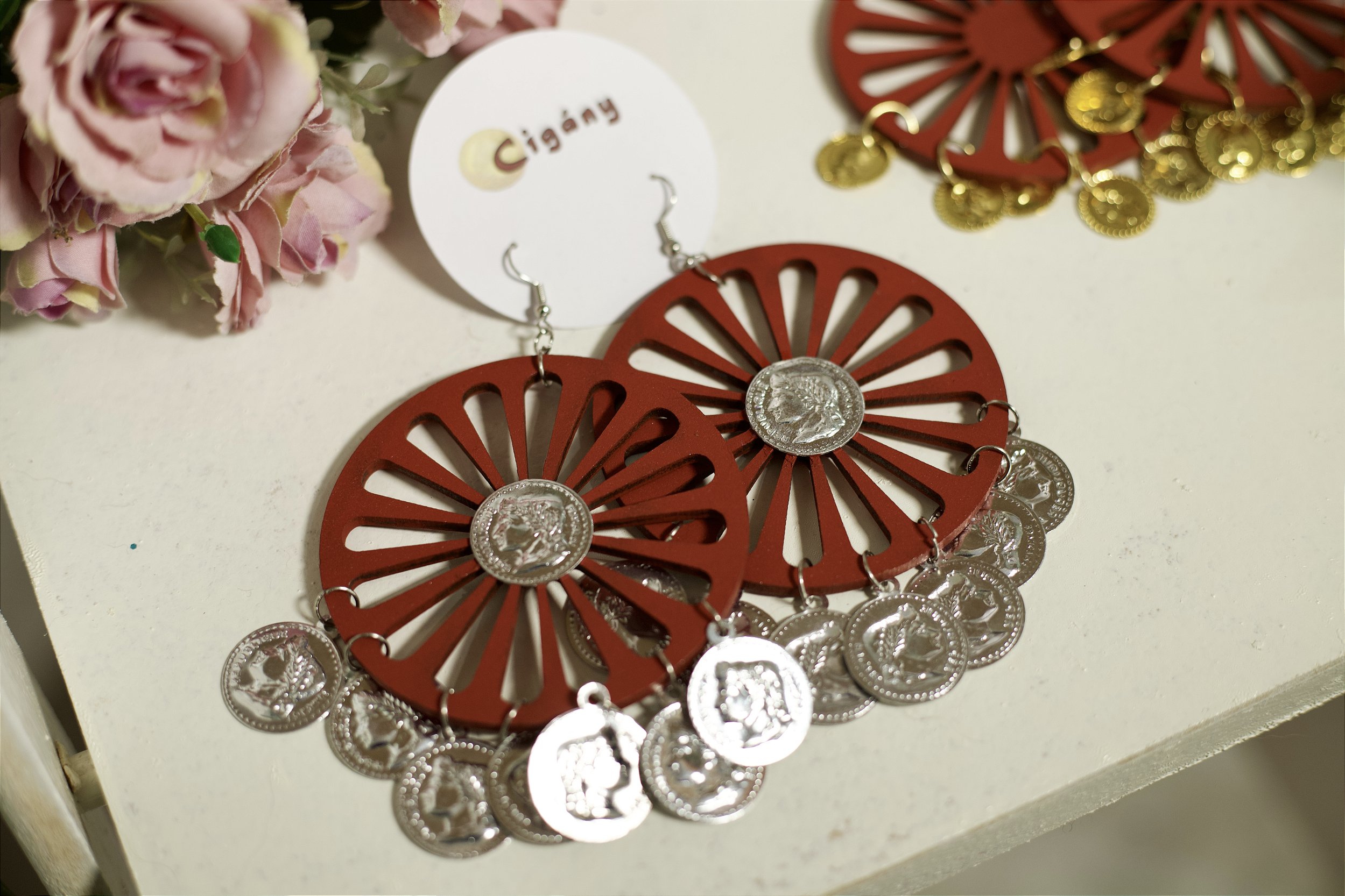Confeccionado artesanalmente com rodas ciganas vermelhas em MDF, moedas ciganas e metais prateados, este brinco traduz a força do movimento e da liberdade com um visual autêntico e fora do óbvio. Ao fugir do clássico dourado, a peça ganha um ar moderno, místico e marcante, perfeita para quem carrega a essência cigana, mas ama imprimir personalidade própria no visual. 🧿✨