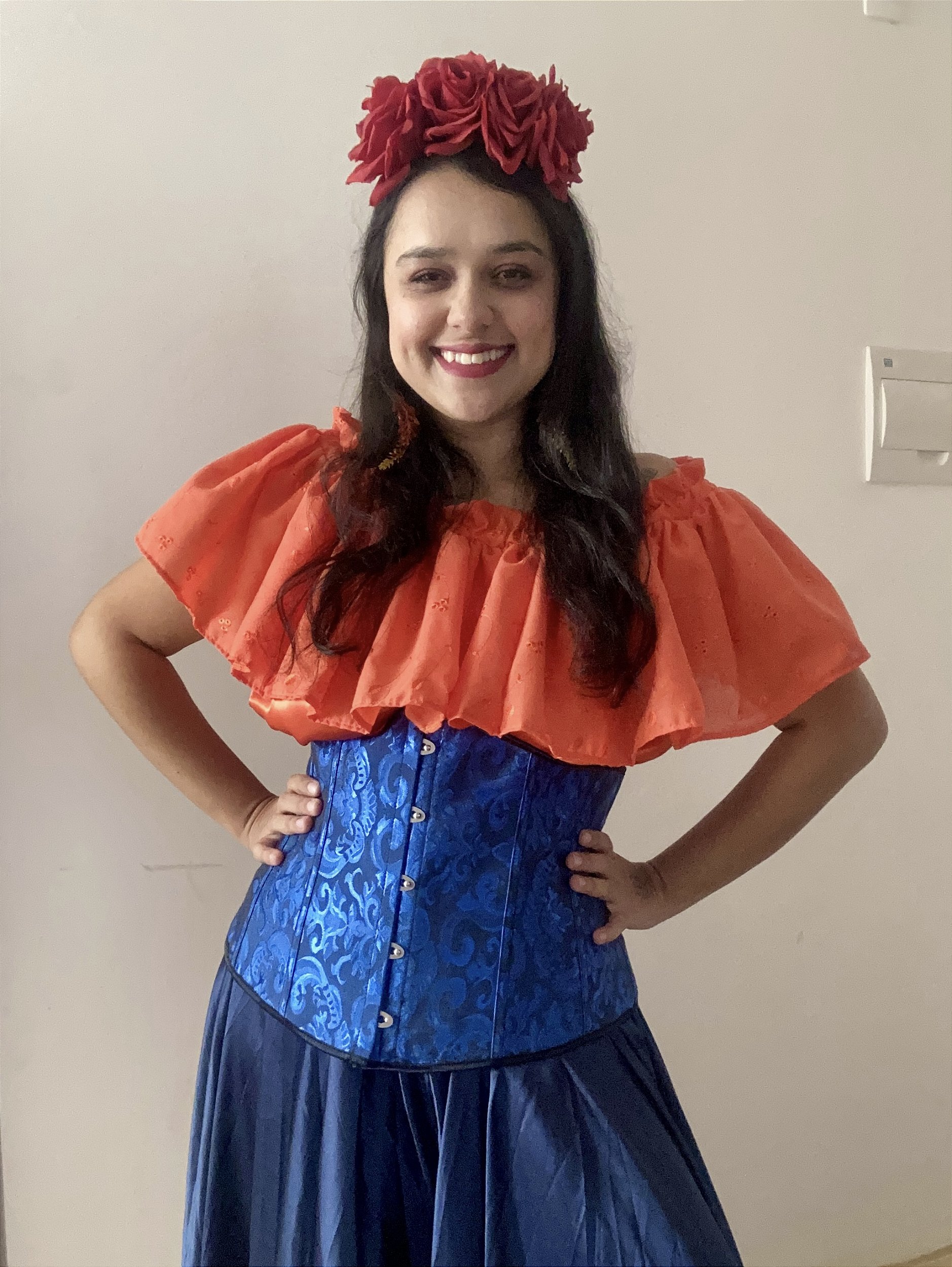 Com estrutura firme e fechamento por colchetes frontais, é ideal para compor produções ciganas, renascentistas ou festas temáticas, além de ser uma peça de destaque em ensaios e apresentações.