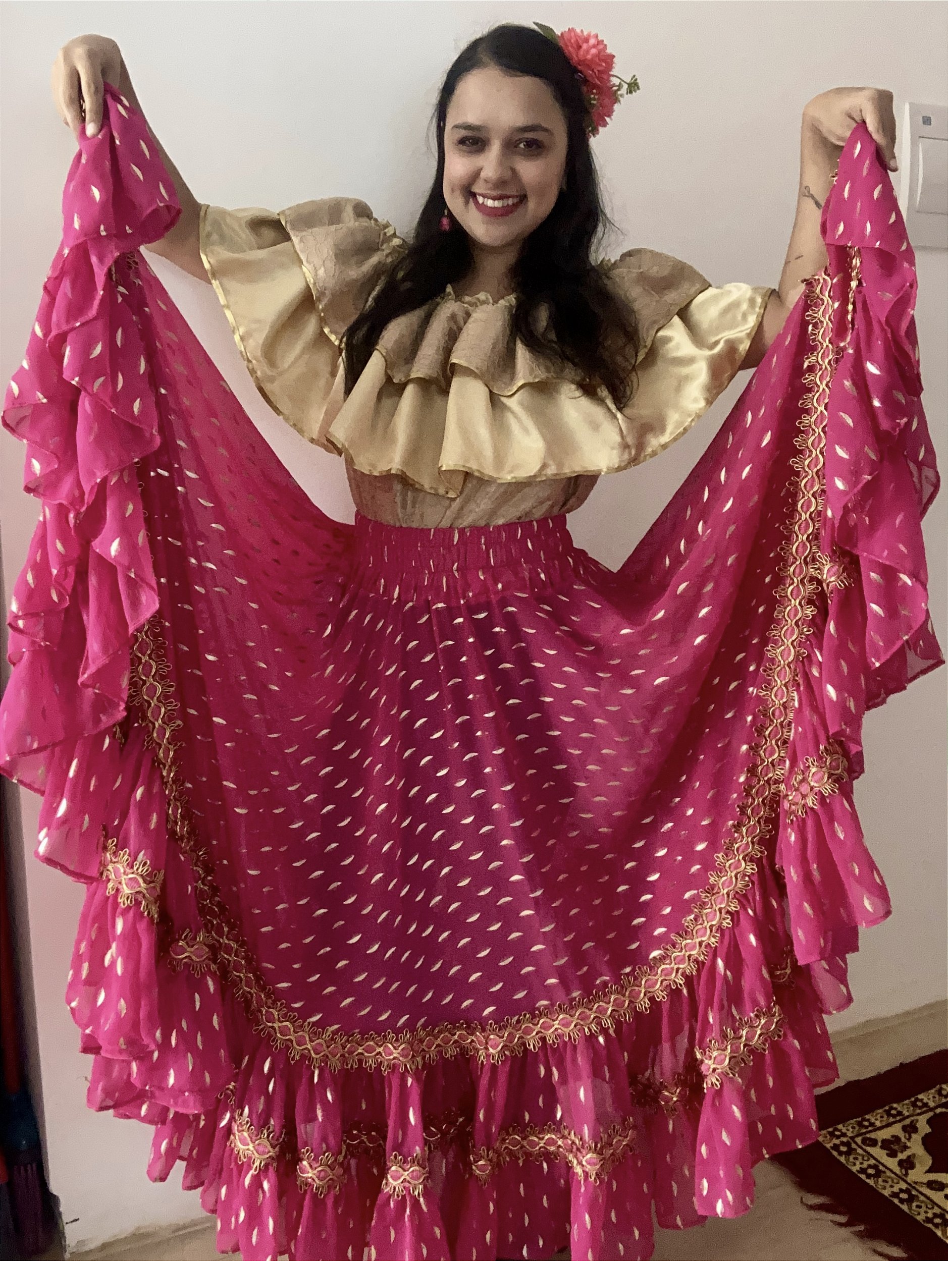 Uma peça feita para mulheres que valorizam a arte do vestir com autenticidade, beleza e presença. Ideal para danças, celebrações e apresentações com toque místico e cultural.