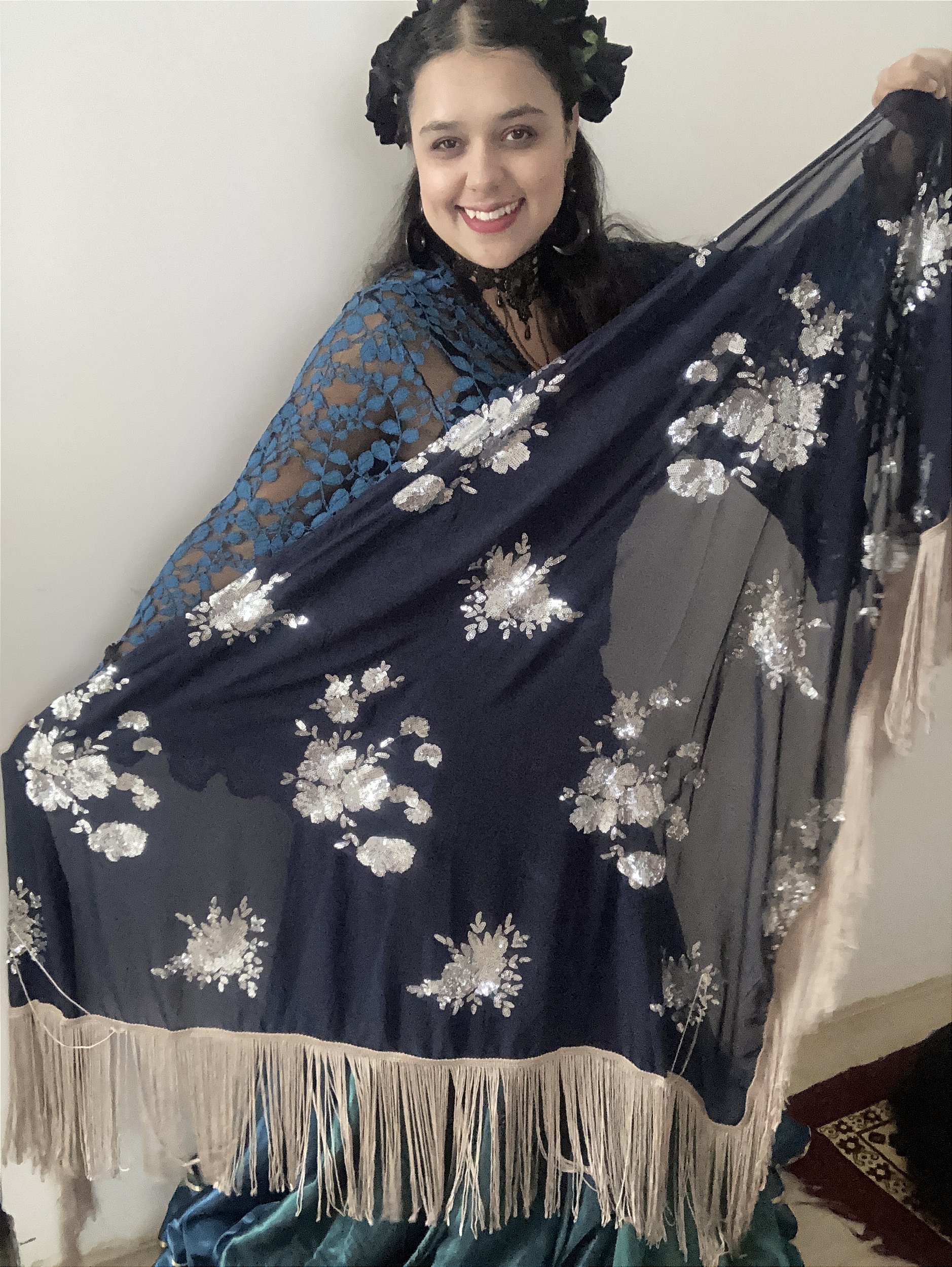 Xale Cigano em Chiffon Azul Marinho com Bordado Prateado ✨